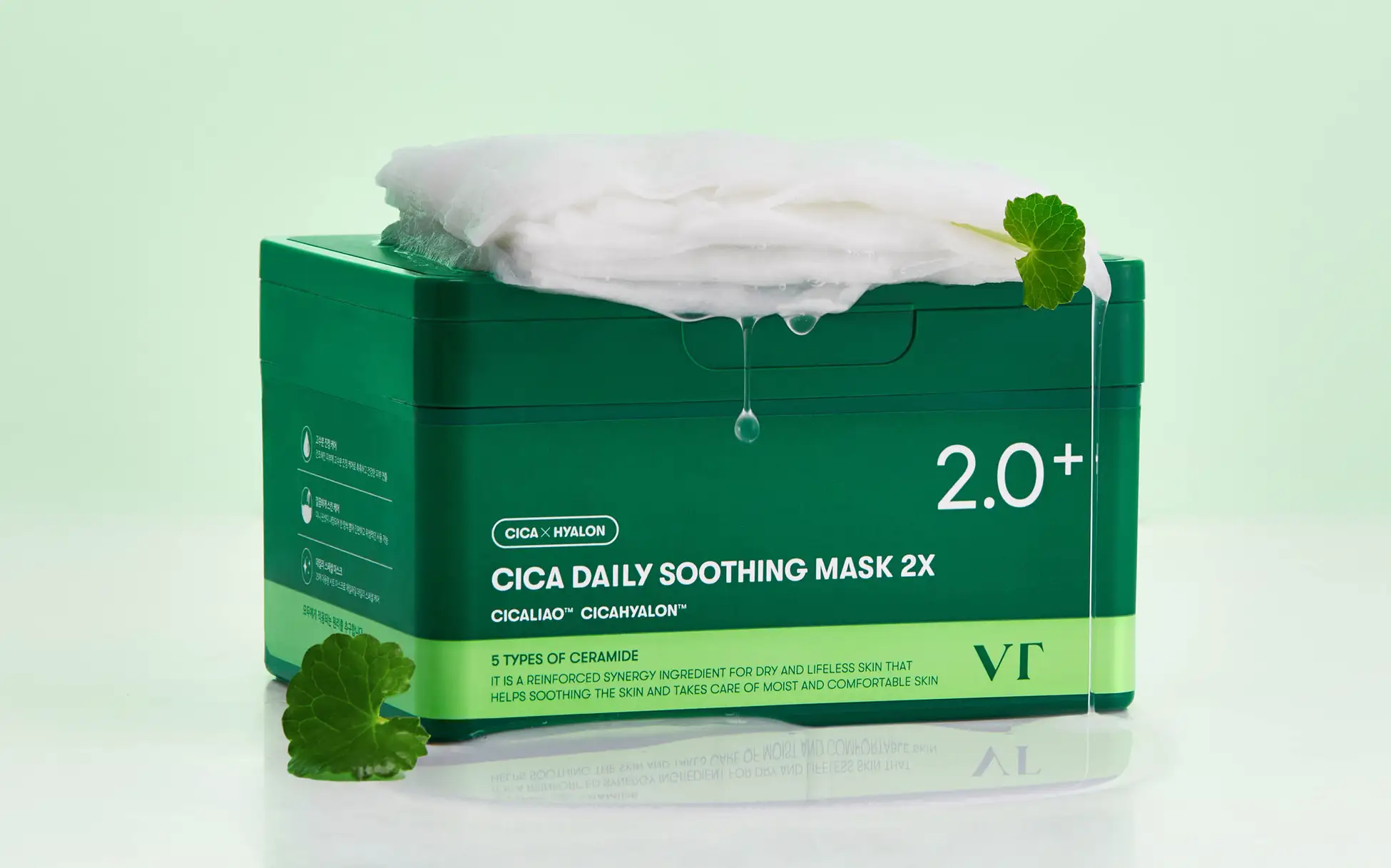 「CICA デイリースージングマスク2X」(通常価格2,420円→メガ割価格1,815円/25%OFF)は、2025年上半期までに累計1,841万箱を売り上げたVTの定番「緑のCICA デイリースージングマスク」が、CICA成分を2倍に増量した超最強リニューアルバージョンとして登場しました。