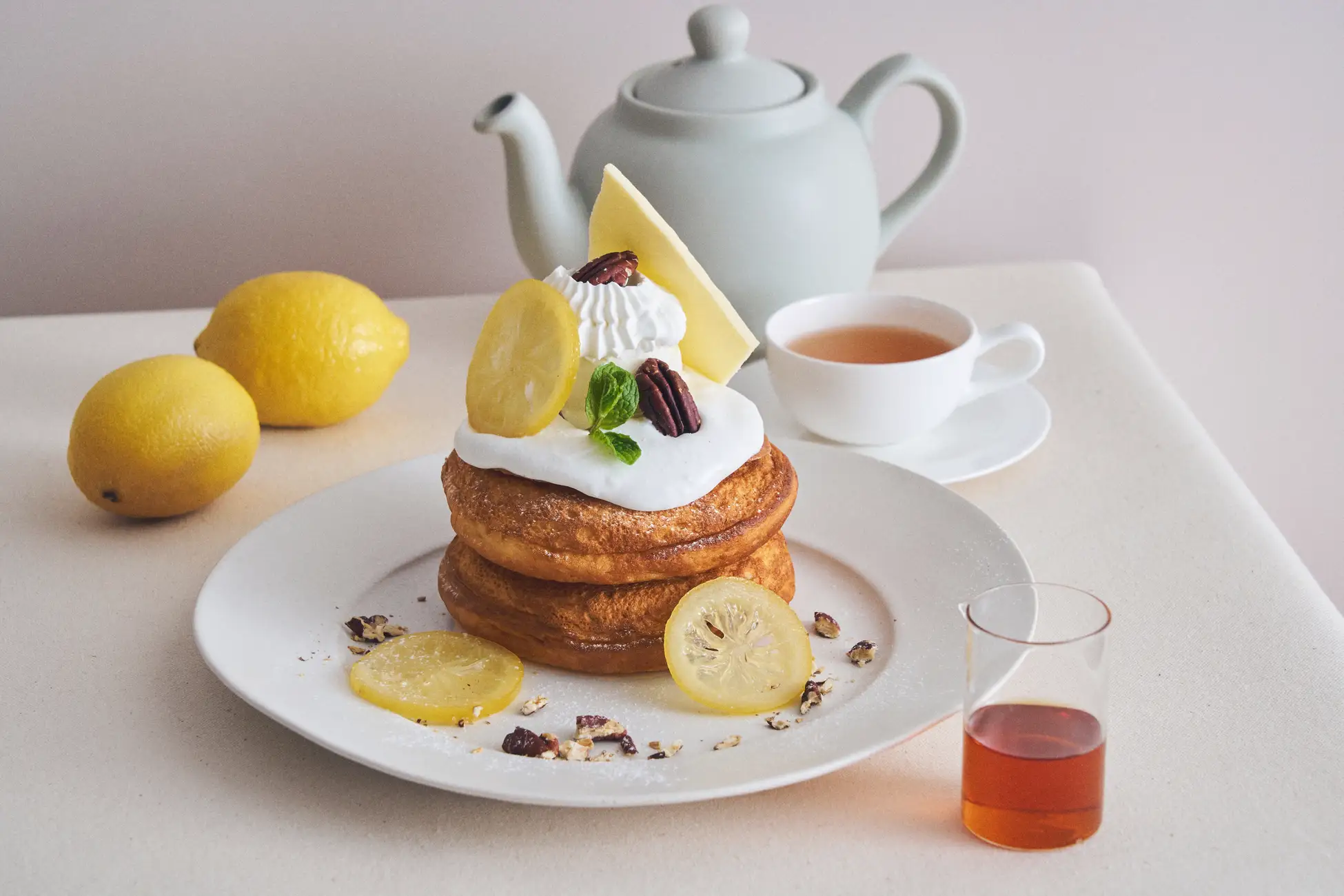 甘さと塩味、爽やかな酸味が重なり合う—「塩バニラクリームとシュガーバターのパンケーキ レモンティーソース」が5月限定で登場